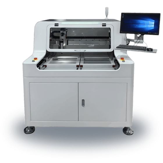本設(shè)備主要利用銑刀高速運(yùn)轉(zhuǎn)將多連片式PCB按預(yù)先編程路徑分割開(kāi)來(lái),取代人工折斷或V-CUT或PUSH的切割瑕疵,有效的降低分板時(shí)產(chǎn)生的應(yīng)力,并且分板切割面光滑無(wú)毛刺